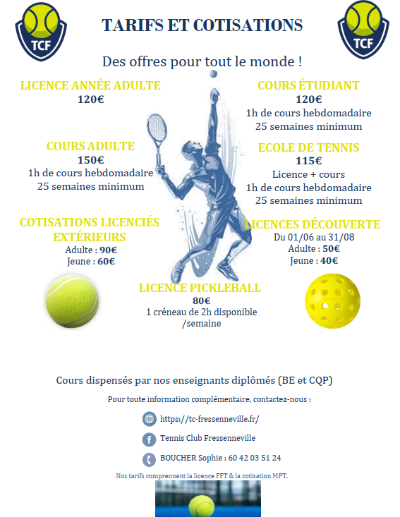 Les offres « cotisation extérieure » vous permettent d’accéder aux courts de tennis de Fressenneville toute l’année, sur réservation.